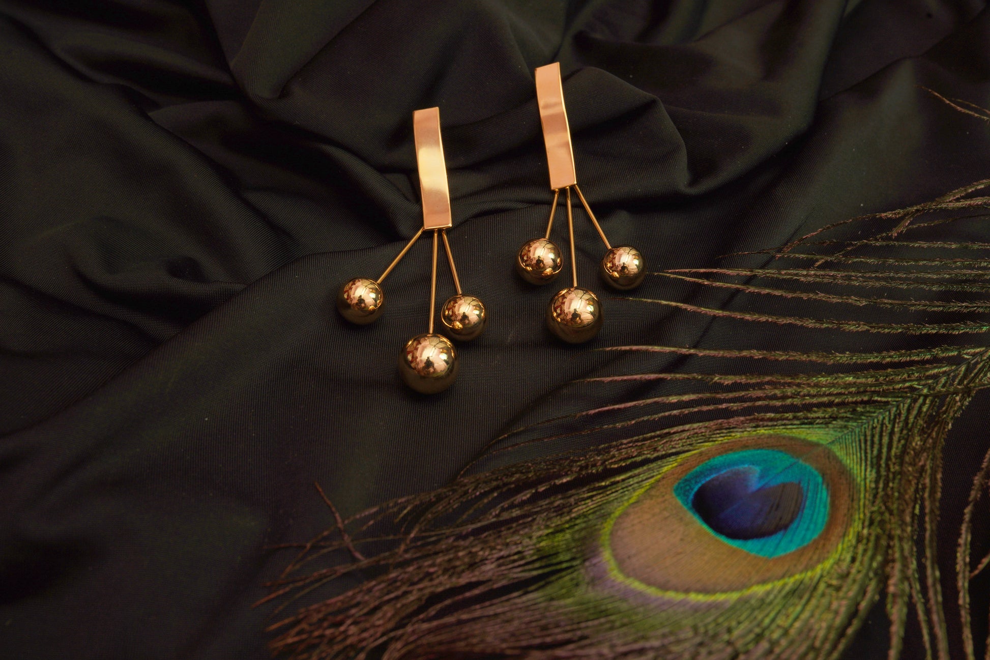 Bold at the top, delicate at the finish — the Golden Cascade Ball Drop Earrings feature a statement-making stud that flows into multiple fine chains, each ending in glimmering golden ball drops. The contrast of structure and movement creates a dynamic silhouette that’s equal parts modern and elegant. Lightweight yet impactful, these earrings are perfect for nights out, festive looks, or elevating the everyday.