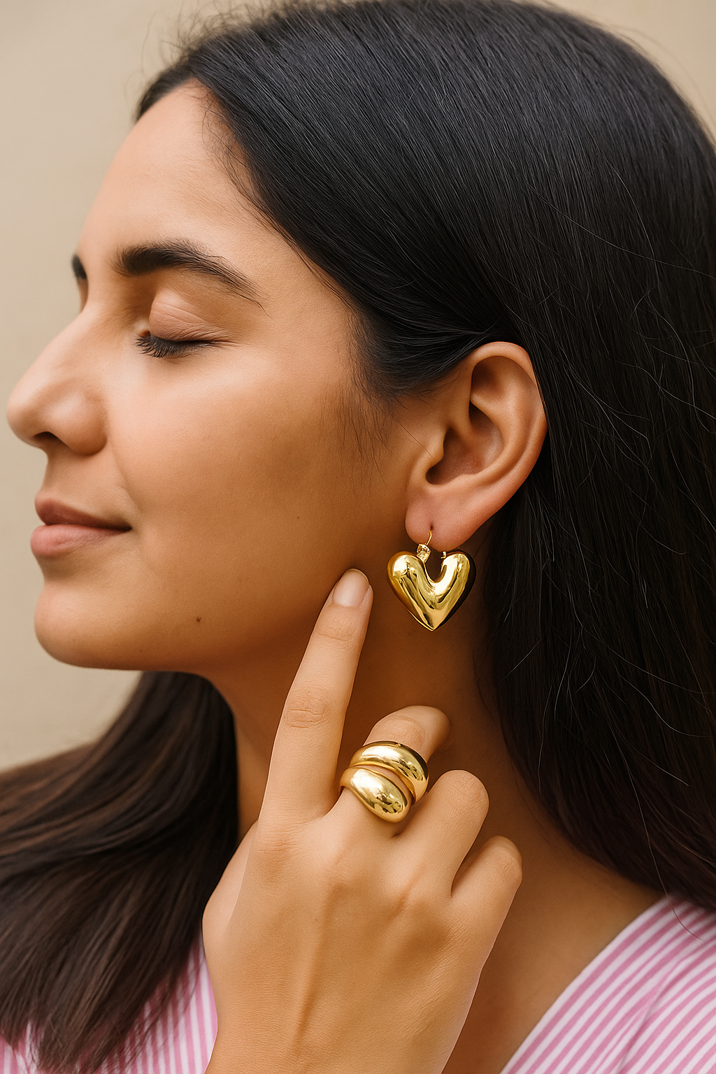 A modern twist on romance — the HeartHoop Earrings feature a soft, heart-inspired shape crafted into a sleek bali-style hoop. Mid-sized for just the right amount of presence, these earrings blend timeless love with everyday wearability. They’re lightweight, comfortable, and versatile — perfect for both daily looks and