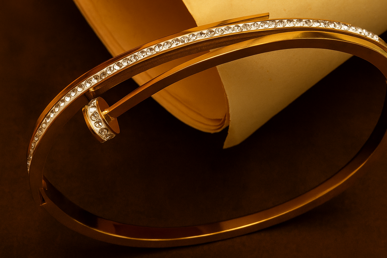 High polished stainless steel oval bracelet bangle, adorned with sparkling cubic zirconia diamond accross the top